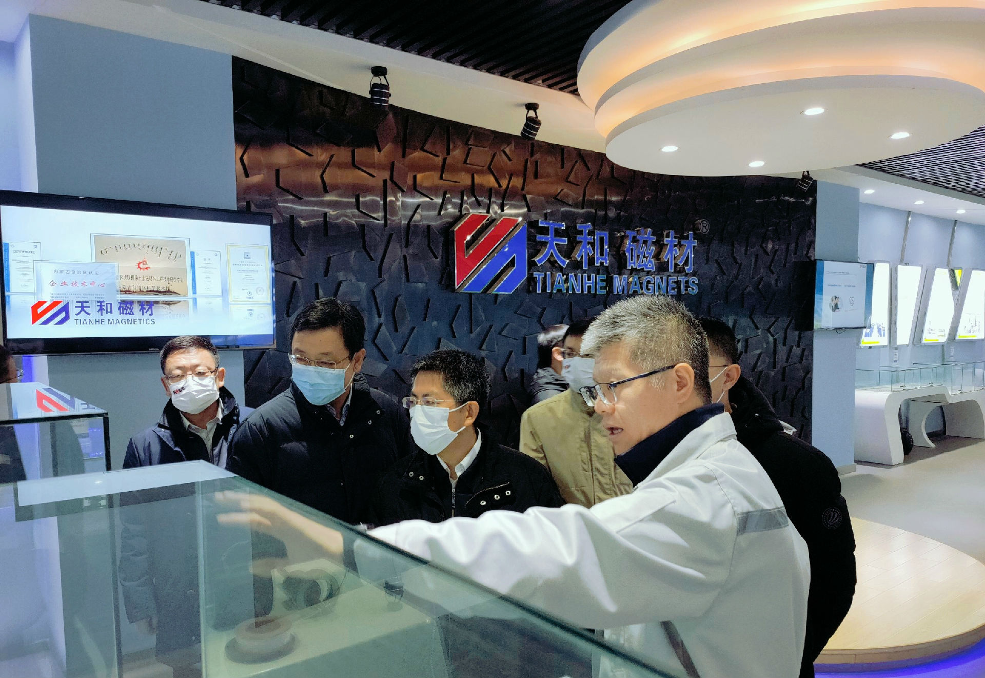 12月21日上午,工业和信息化部原材料司副司长常国武一行莅临天和磁材调研指导,工业和信息化部原材料司有色金属与稀土处处长王中、内蒙古工信厅冶金建材处处长刘景春、包头市工业和信息化局副局长郭玉明、稀土高新区管委会主任邬军军等领导陪同调研,公司副总经理袁易接待了调研组一行。
