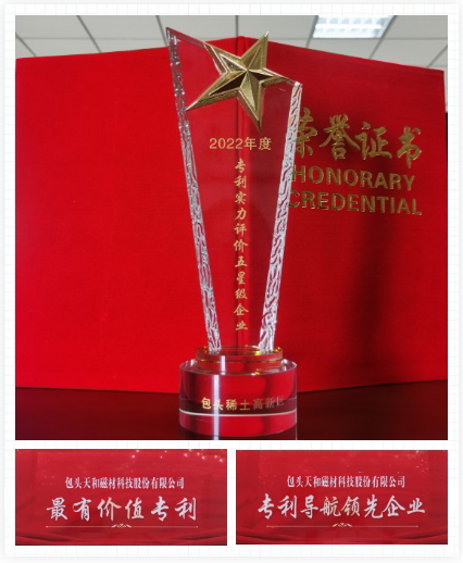 天和磁材有幸荣获2022年度专利实力评价五星级企业、专利导航领先企业及最有价值专利三项奖励。以此获奖为契机,天和磁材将进一步推动知识产权发展,持续加强产品研发和技术创新的融合,实现从专利到生产力的高效转化,从而增强公司市场竞争力,推动企业高质量发展。