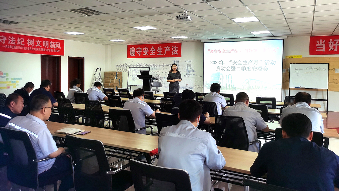 6月1日,在第21个全国“安全生产月”来临之际,公司举行“遵守安全生产法,当好第一责任人”为主题的2022年“安全生产月”活动启动会。启动会宣贯安全生产法,强调“第一责任人”守法职责,动员全体员工积极参与“安全生产月”的系列活动。总经理陈雅、副总经理袁易、各部门部长和安全负责人参加了启动会。